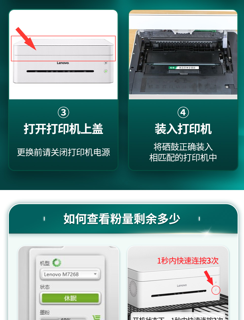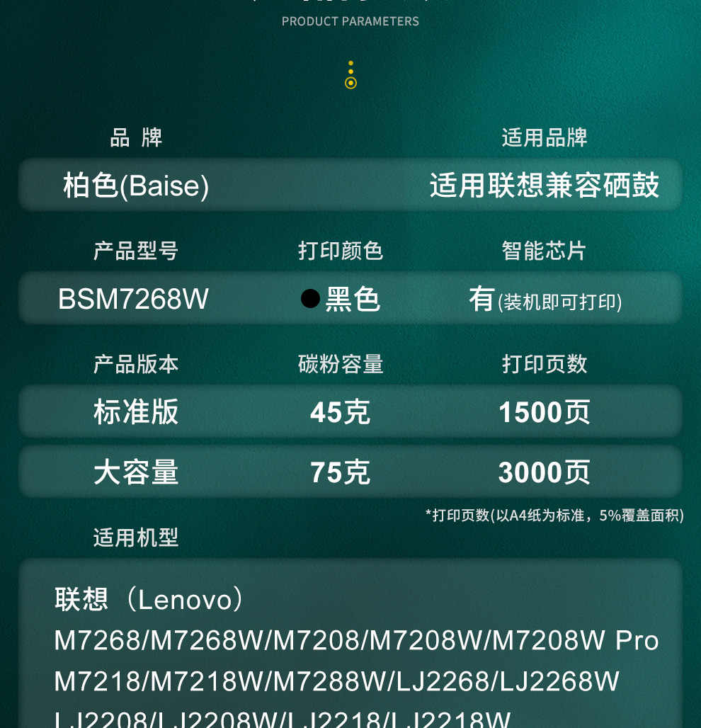 柏色小新M7268W墨盒適用聯(lián)想打印機(jī)m7268w墨粉Lenovo硒鼓多功能一體機(jī)2268w墨粉 【3000頁(yè)】聯(lián)想M7268W專用碳粉 1瓶裝