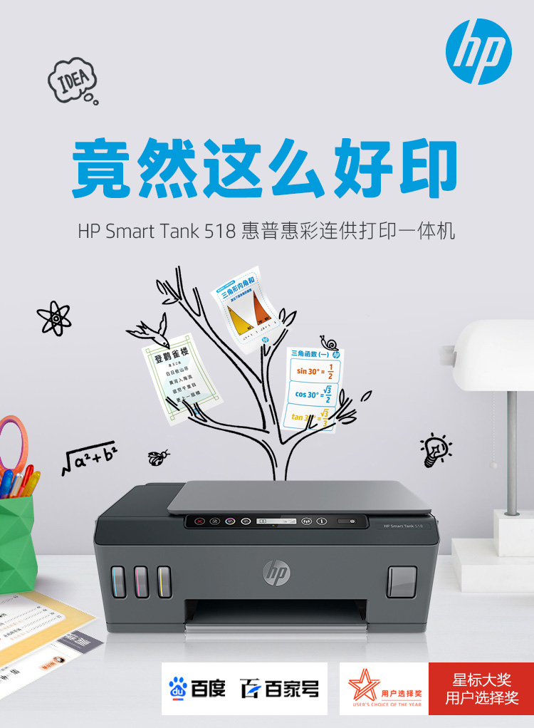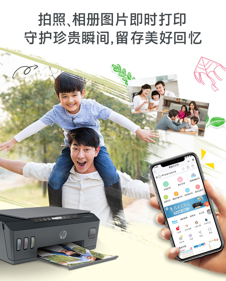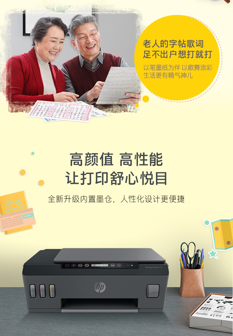 惠普(HP)518 連供無(wú)線打印一體機(jī)三合一彩色打印復(fù)印掃描家庭打印商用辦公內(nèi)置墨倉(cāng)單頁(yè)成本1分錢