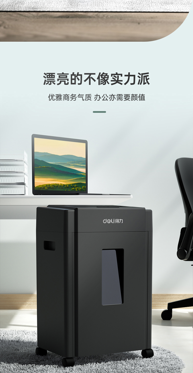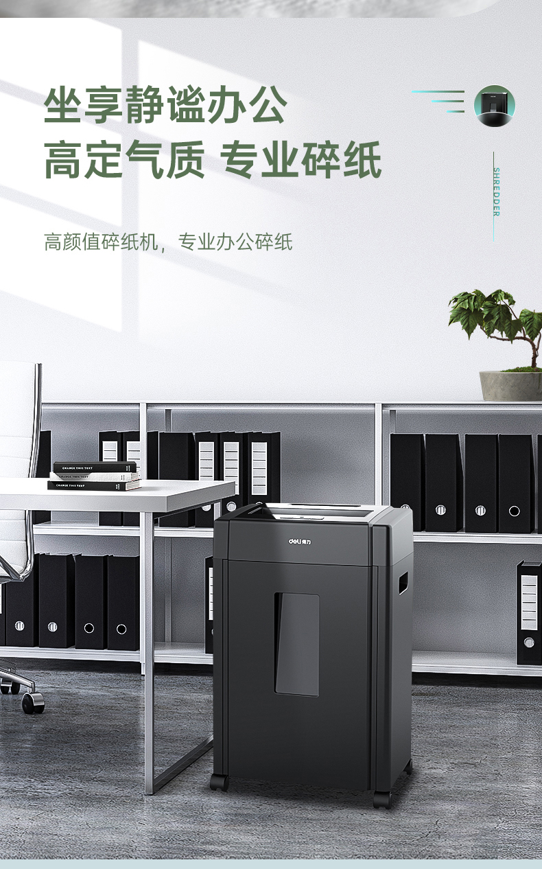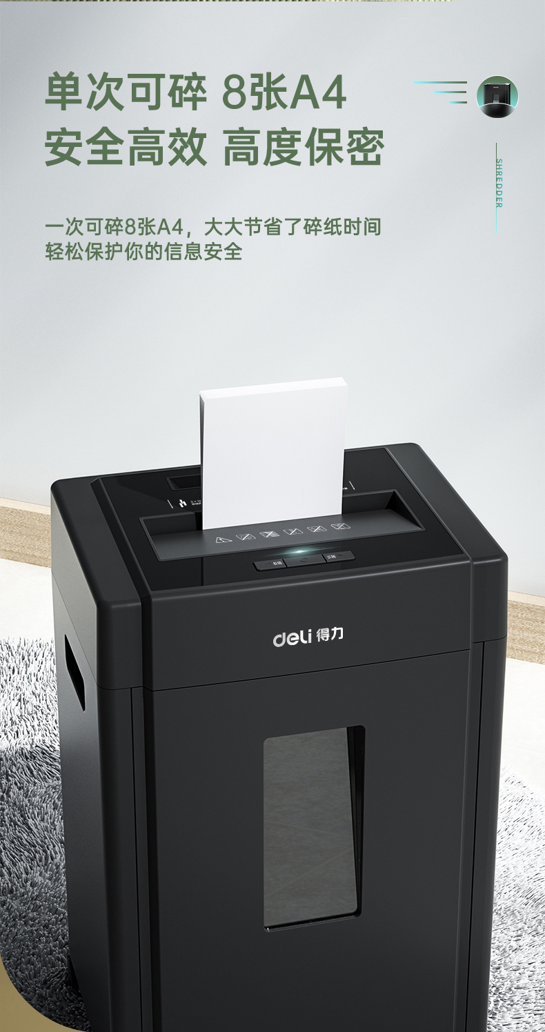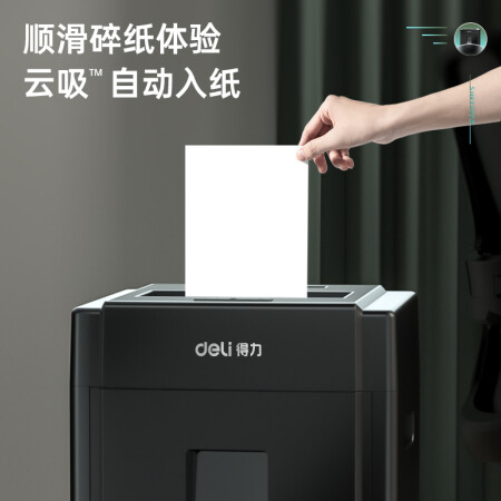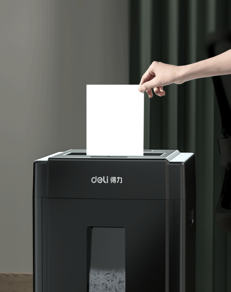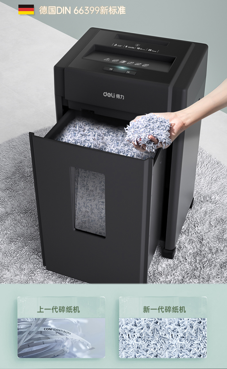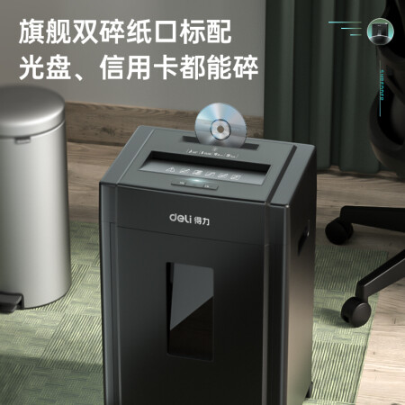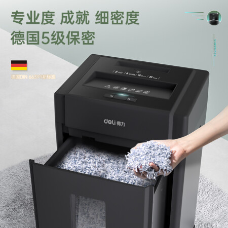 得力 deli 5級(jí)保密辦公商用碎紙機(jī)(單次8張 20L 持續(xù)10分鐘 可碎卡碎光盤)33043