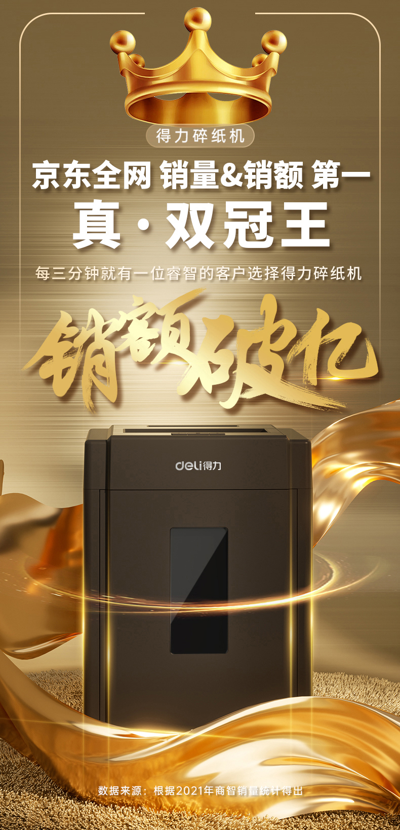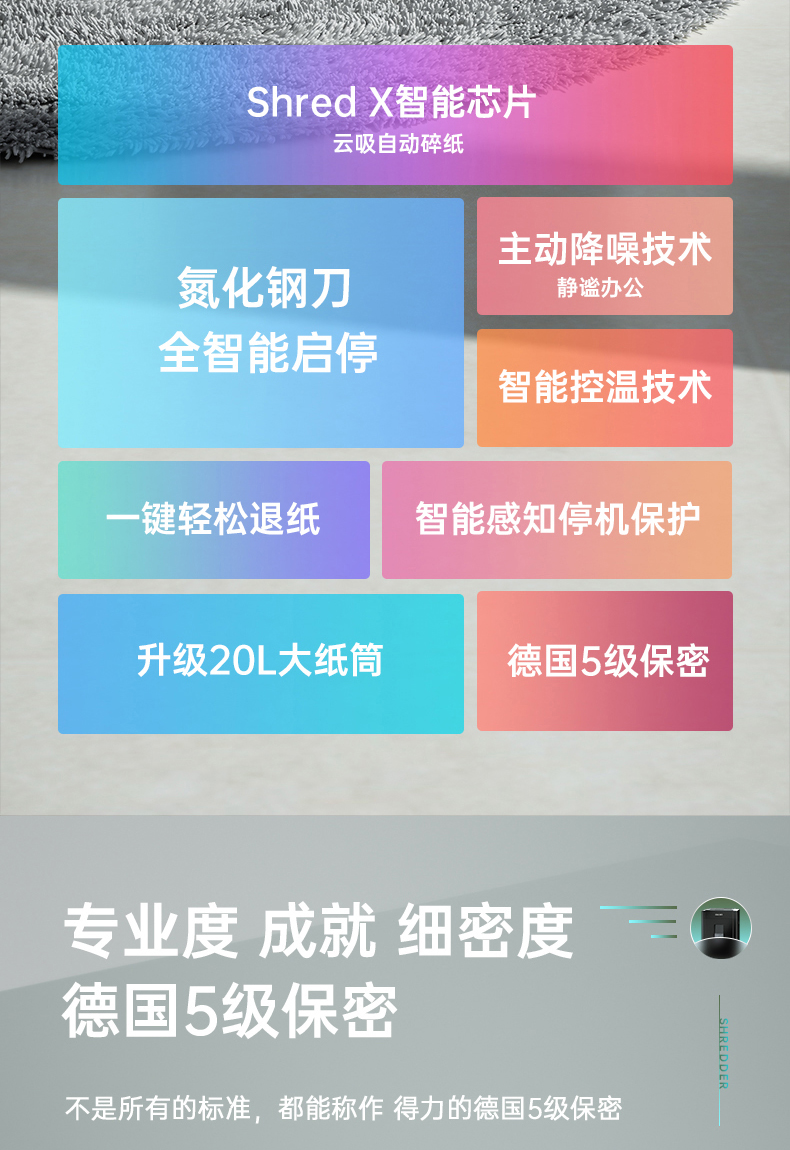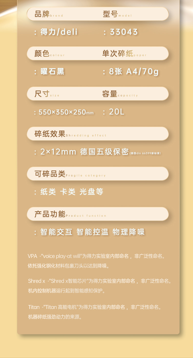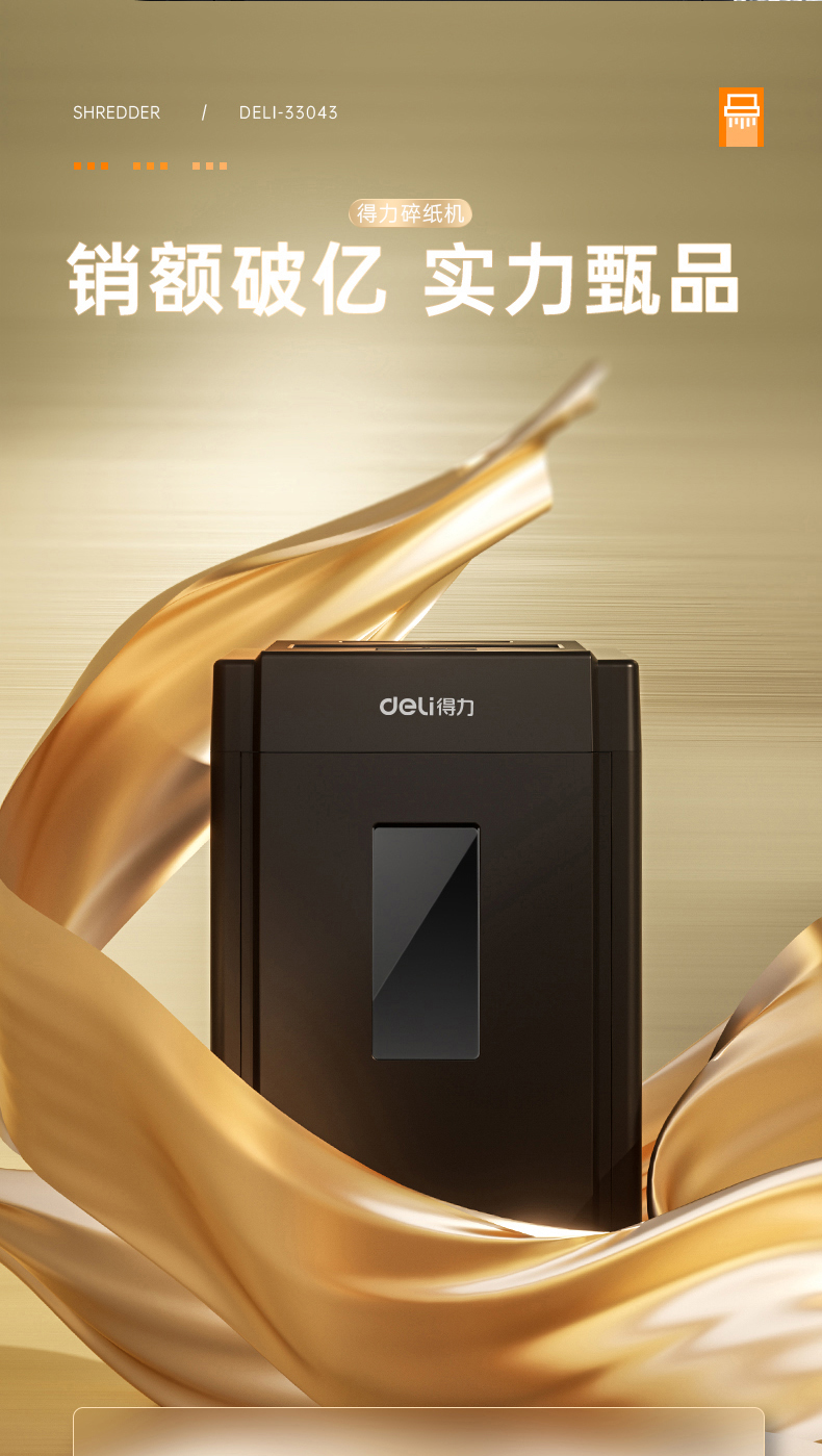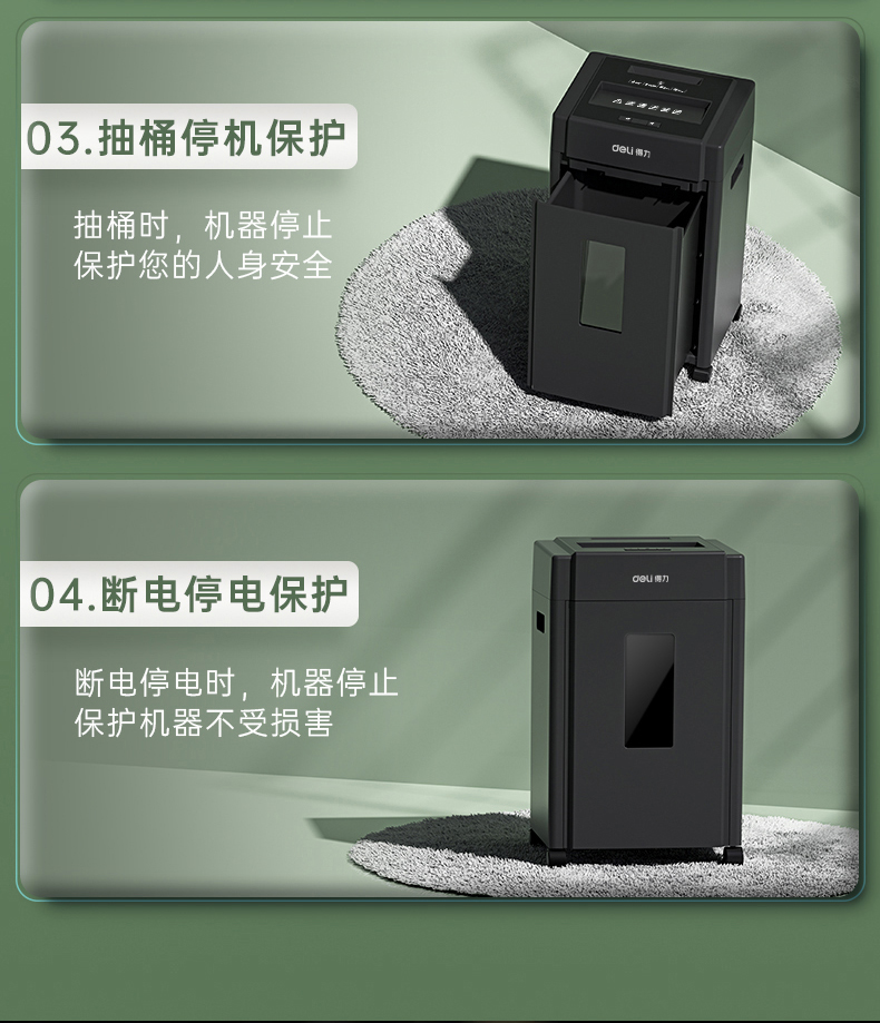 得力 deli 5級(jí)保密辦公商用碎紙機(jī)(單次8張 20L 持續(xù)10分鐘 可碎卡碎光盤)33043