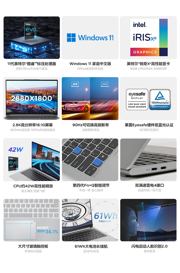 聯(lián)想筆記本電腦小新Pro14 英特爾Evo平臺(tái)14英寸全面屏性能輕薄本 標(biāo)壓i5-11320H 16G 512G 2.8K 90Hz 護(hù)眼屏