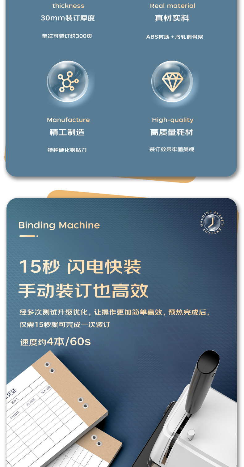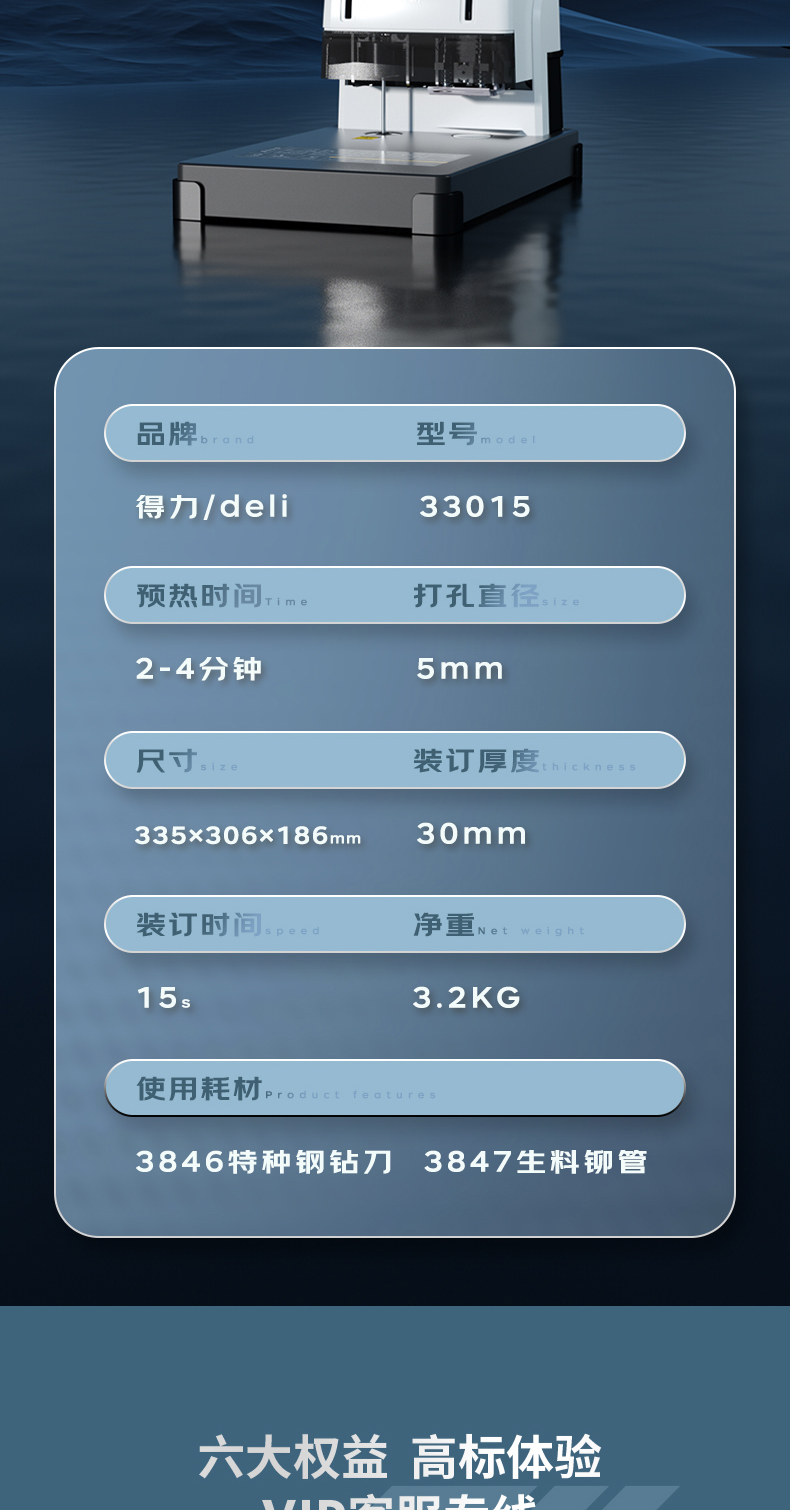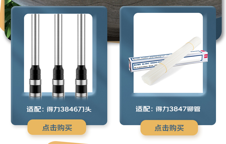 得力(deli)33015 財務(wù)憑證裝訂機 檔案打孔機/適配得力3847鉚管/3846鉆刀