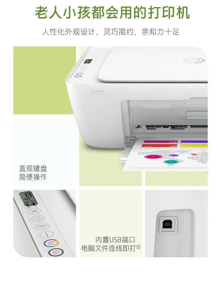 惠普(HP)DJ 4825彩色無線噴墨一體機 大印量低成本學(xué)生打印微信打?。ù蛴?復(fù)印 掃描)2720/2775升級款